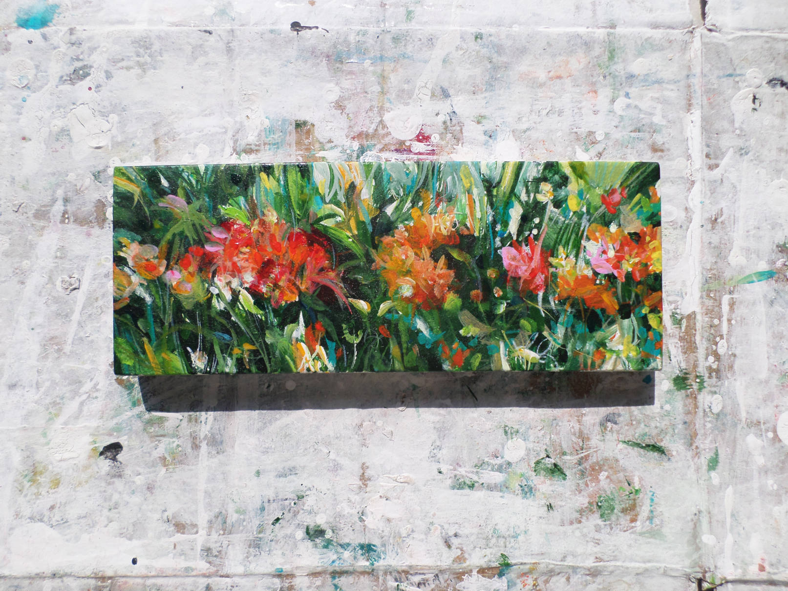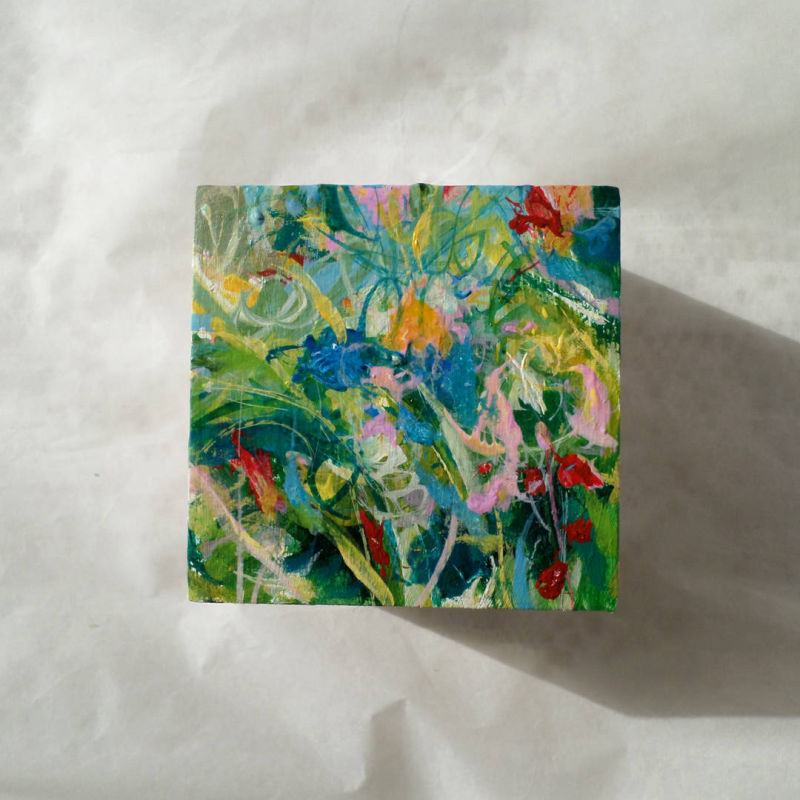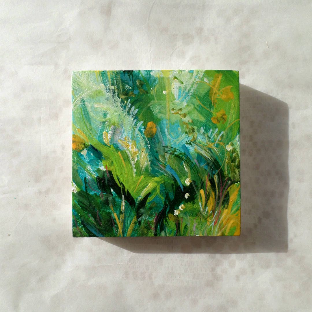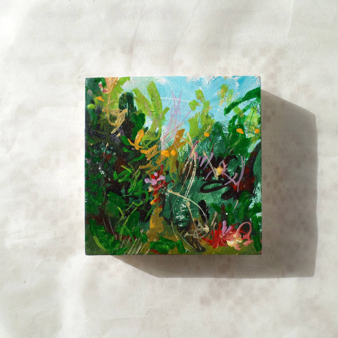 Pequenas paisagens pintadas em acrílico sobre madeira. O maior tamanho chega a 27 cm. Estas peças complementam a série de grandes formatos sobre tela que chegam, por enquanto, a 190 cm. A pintura, como nestes suportes de madeira, tem reações diferentes da superfície de uma tela durante a execução da peça. Por serem menores há um grau de informação muito denso. As cores reagem rápidamente e a composição, mesmo aleatória e caótica, é decidida logo no início da execução. Estas peças tem alturas diferentes entre elas.