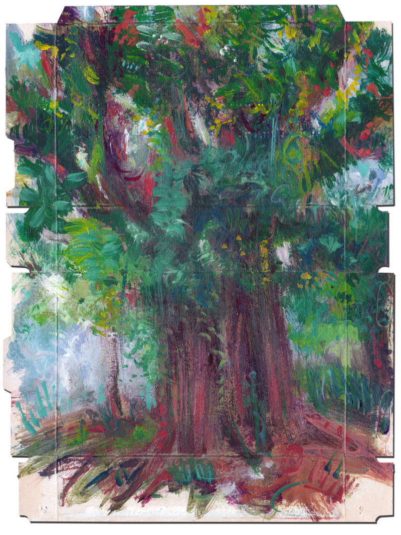 Paisagens criadas sobre o verso de embalagens de caixas de papelão abertas. Algumas foram pintadas em acrílico. Uma outra série de peças foi criada em acrílico e depois remontadas digitalmente. As artes são mais ou menos figurativas e foram realizadas quando eu ainda estava tateando temas/assuntos para pintar. O nome Jungle in a box, selva em caixa, são dioramas criados por alunos do ensino primário nos EUA.